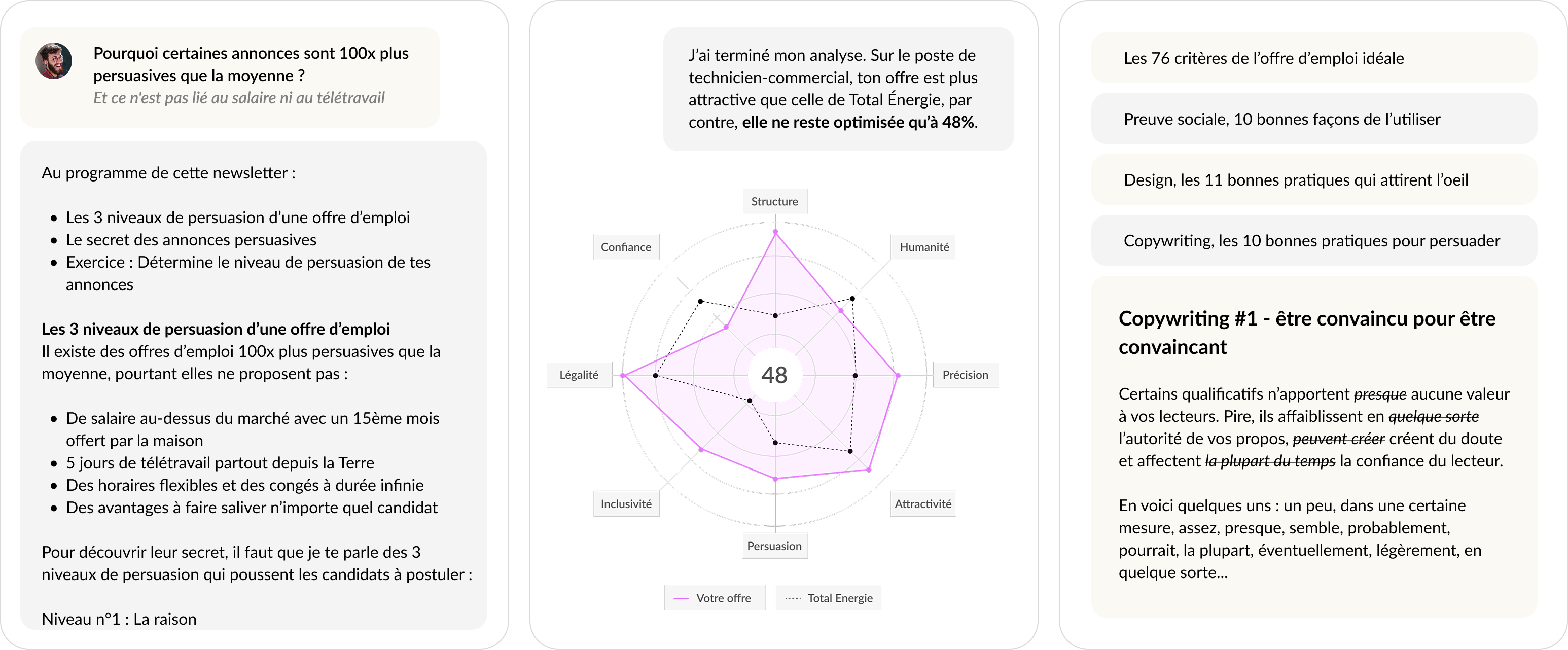 Chaque semaine, reçois mes conseils pour enfin attirer les candidats qualifiés, pas des candidatures hors-sujet.